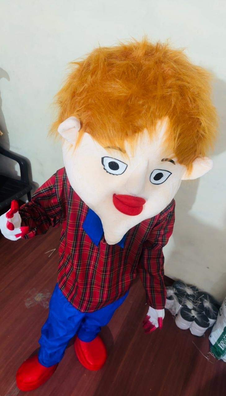 - The head of the mascot is made of foam with net on the face to see through, it has steel frame to give the shape.
